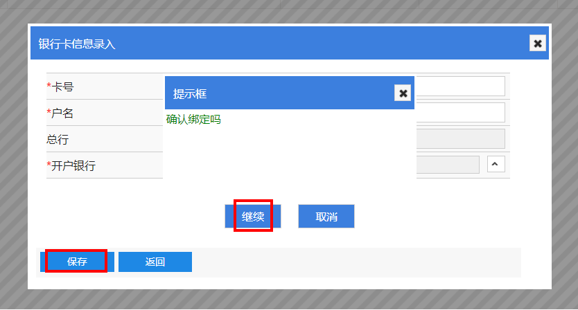 (3)点击“保存”并确认绑定后点击“继续”