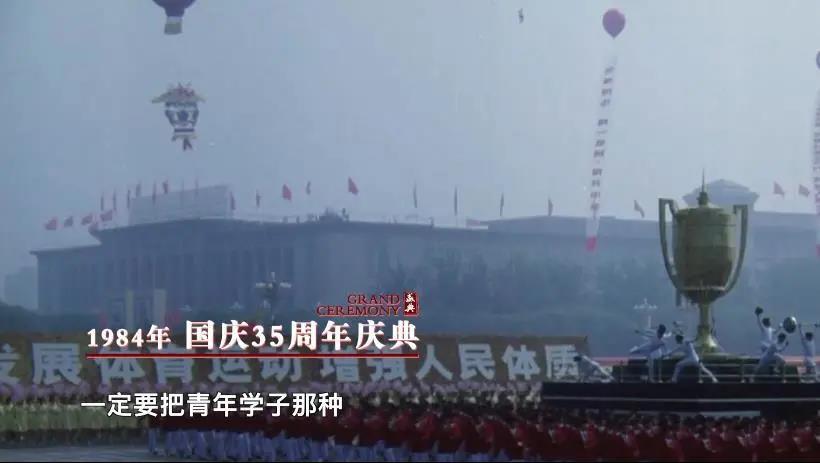 1984年10月1日,国庆35周年庆祝活动,北京工业学院(北京理工大学前身)1400名师生参与群众游行体育方阵。