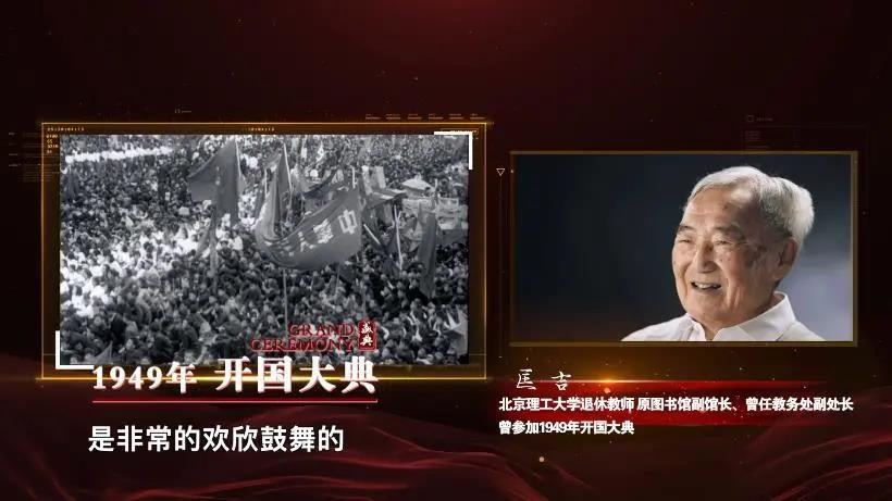 盛典,饱含深义。1949年,300余名师生参加开国大典;2019年,5058名师生参与国庆70周年庆祝活动。一代代北理工人,为祖国的繁荣昌盛做出贡献。留下了那一段段激情澎湃的奋斗记忆。