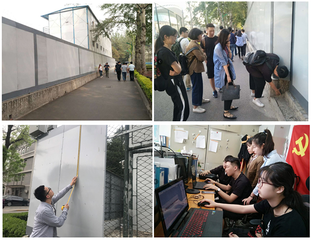 6月20日,北理工设计与艺术学院的师生在毕业季为母校献上了一份特殊的礼物,他们让中关村校区新校医院工地一百余米的灰白彩钢围挡摇身变成漂亮的校园文化墙,在校园中展示北京理工大学的往昔峥嵘岁月和现在的美丽校园。
